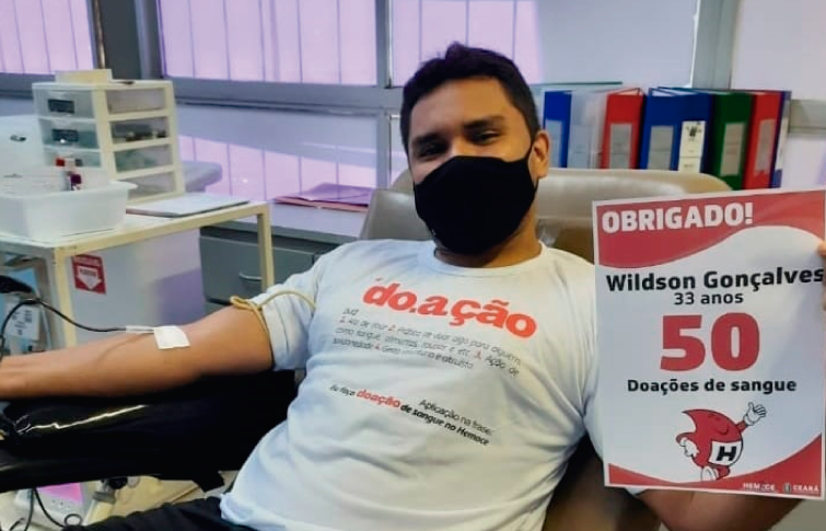 Wildson Gonçalves, 33, já alcançou a marca de 50 doações espontâneas